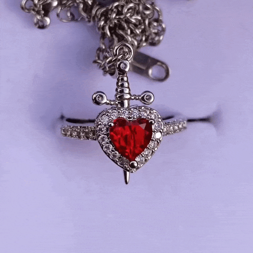 Sorprende este Amor y Amistad con el Anillo Corazón + Cadena Espada 💖 un anillo para su corazón y una cadena para tu fuerza, el símbolo perfecto de su relación.