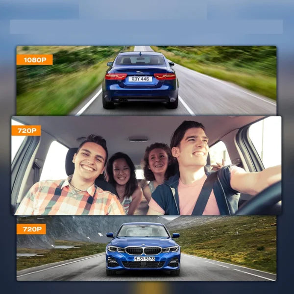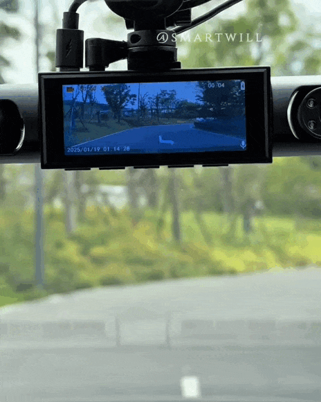 La Dash Cam 3 en 1 activa automáticamente su cámara de reversa al poner la marcha atrás, mostrando en pantalla una vista clara con guías de estacionamiento. Seguridad y comodidad en cada maniobra.