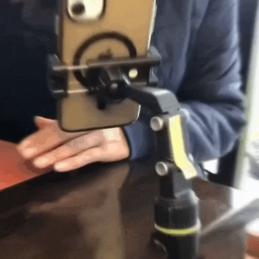 Brazo estable + rótula 360°. Cambia a vertical/horizontal en un giro y graba videos nítidos en movimiento.